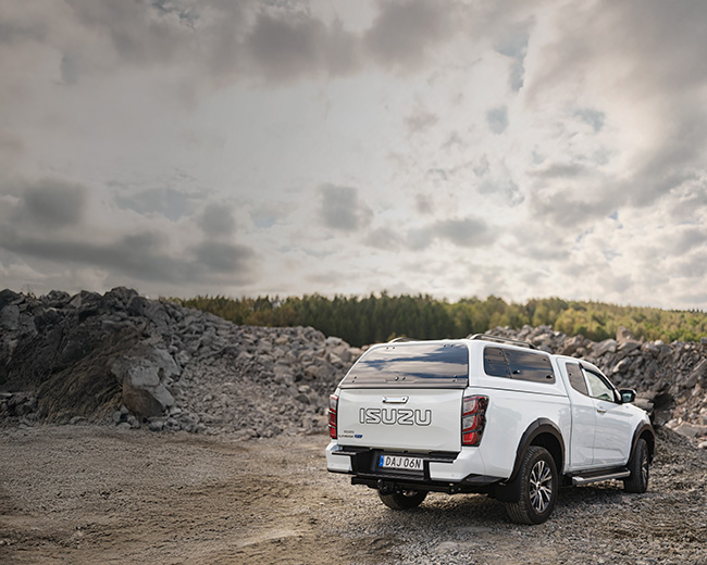 Isuzu D-Max erbjuds med flera drivmedelsalternativ – Diesel, HVO100, CNG och helelektrisk BEV. Det gör det möjligt att minska klimatpåverkan utifrån verksamhetens behov, utan att kompromissa med funktion eller kapacitet.
